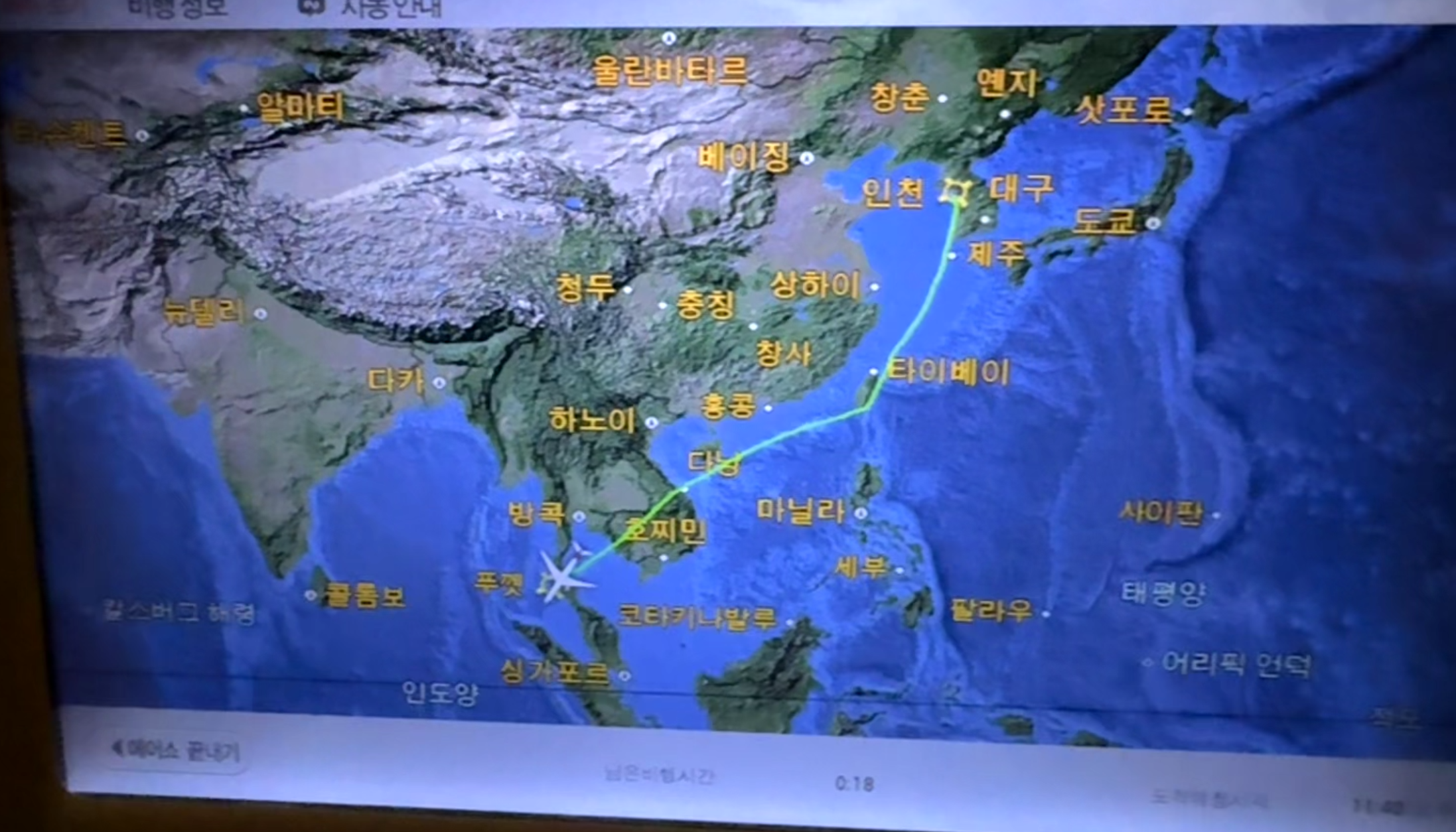 좌석 앞 개인 화면에서